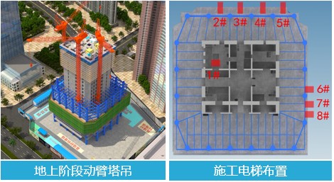 专业系统多,垂直运输量大,主体、二次、装修、机电、幕墙、竖向流水施工,材料运输量大,施工人员多,给垂直运输带来巨大的压力。交叉作业多,管理难度大,各专业交叉工作面多,使用需求差异大,需安排专人编制调配需求使用计划;场地狭窄,材料转运困难,各专业材料数量大,特别是钢构、幕墙构件大。现场可堆放量少,工期紧,需要快速转运。
