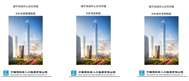 本项目编制的制度包括BIM实施管理制度、BIM例会制度、BIM培训考核制度,BIM月度成果报告制度、专项BIM应用管理制度等,并将每项制度纳入总包管理中,要求各家分包单位严格实施。